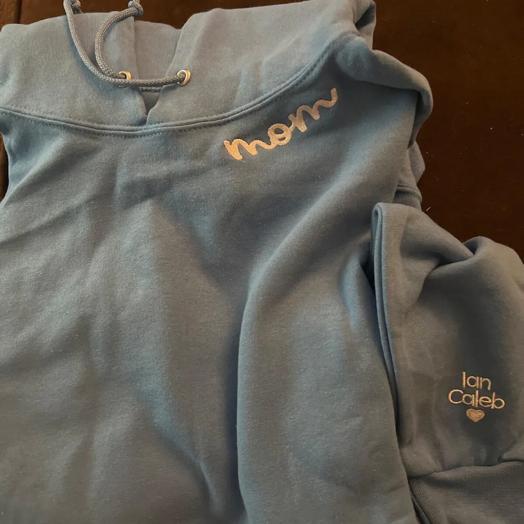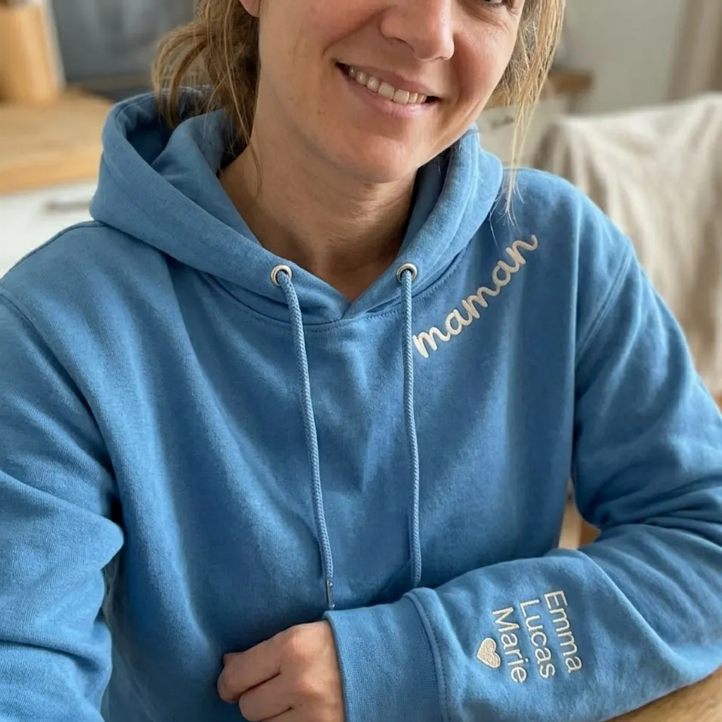 Ma femme avait les larmes aux yeux lorsqu'elle a vu ce sweat-shirt. Les prénoms sont parfaitement brodés.😭