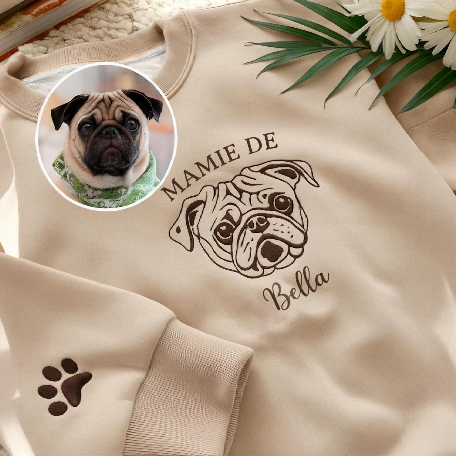 Sweat-shirt brodé avec silhouette d'animal de compagnie de maman