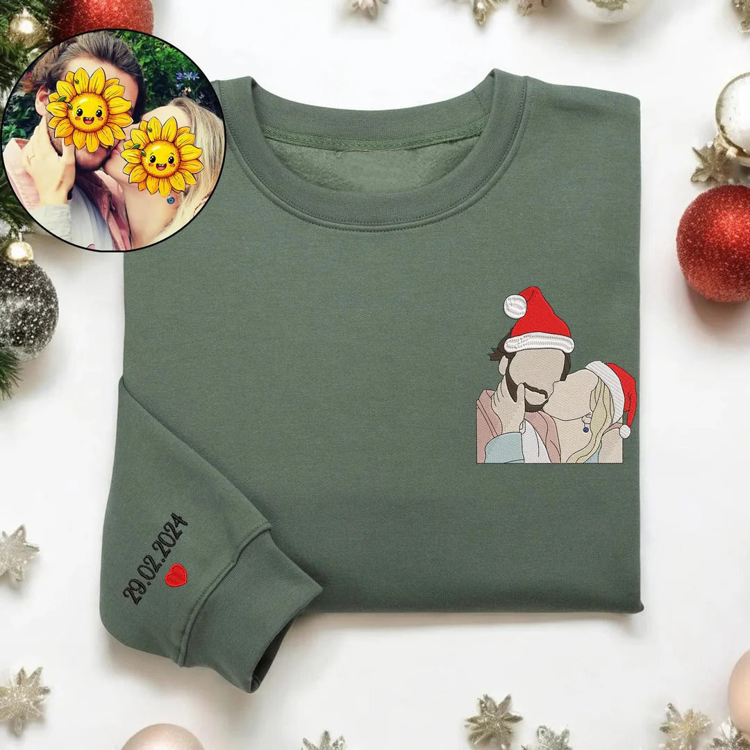 🎅 Sweat personnalisé avec portrait brodé & chapeaux de Noël