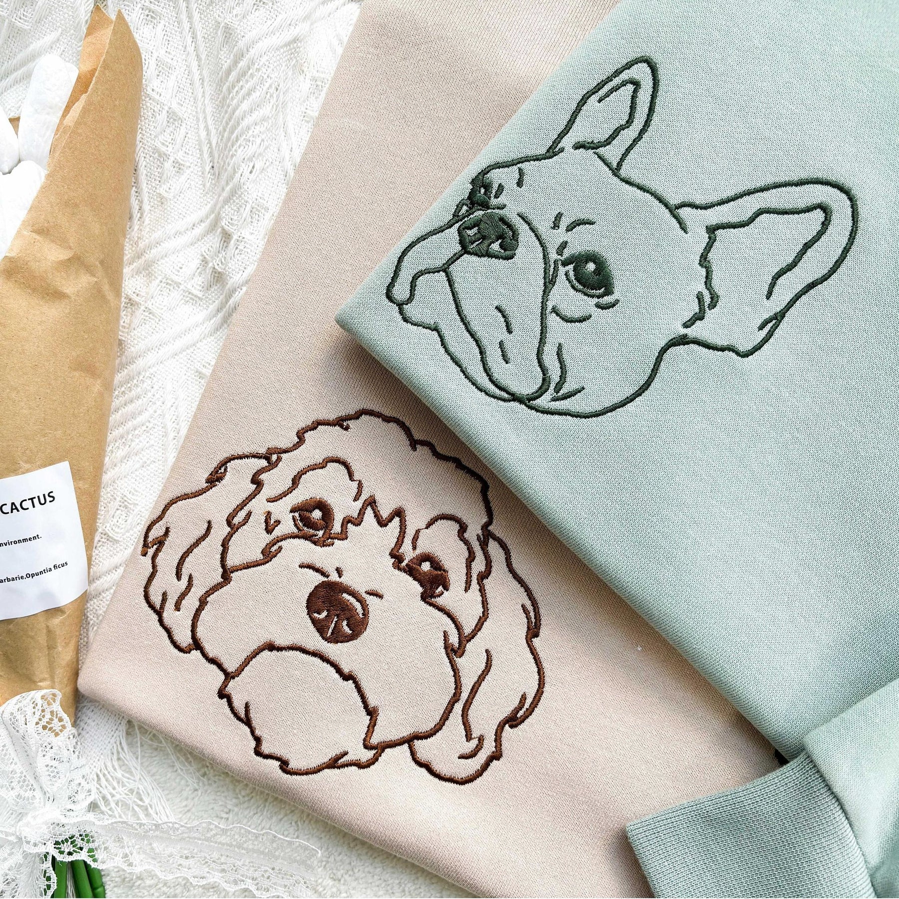 Sweat-shirt brodé avec visage de chien personnalisé avec nom basé sur votre photo.