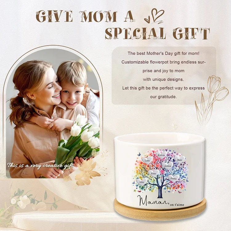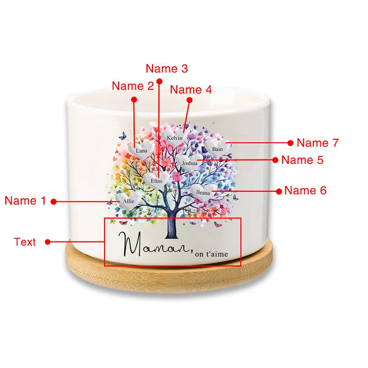 Vase/Pot de Fleurs Arbre 7 Prénoms Personnalisés avec Texte Décoration de la Maison (sans plantes) Jessemade FR
