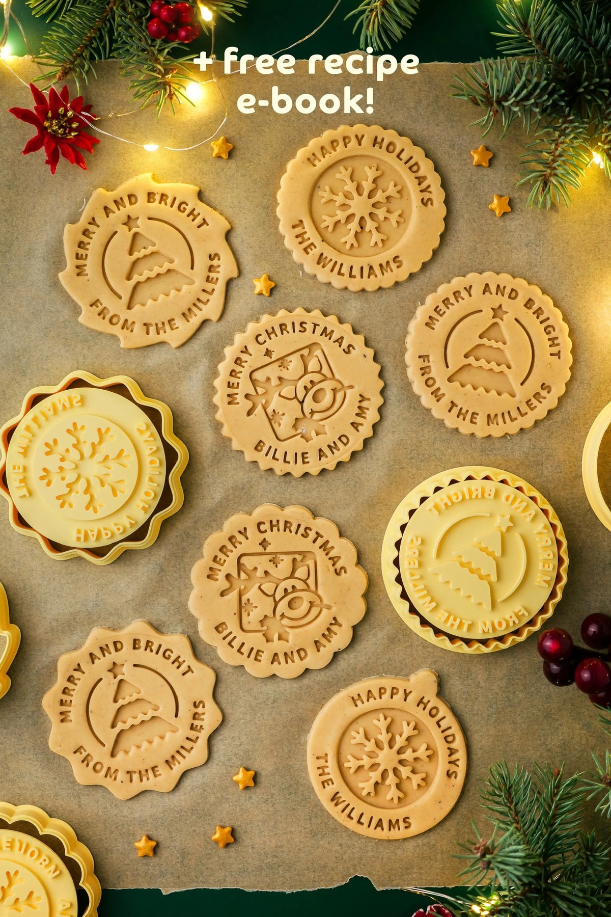 Apportez une touche de magie à vos pâtisseries des fêtes avec notre coffret emporte-pièces et tampons personnalisés ! 🎄