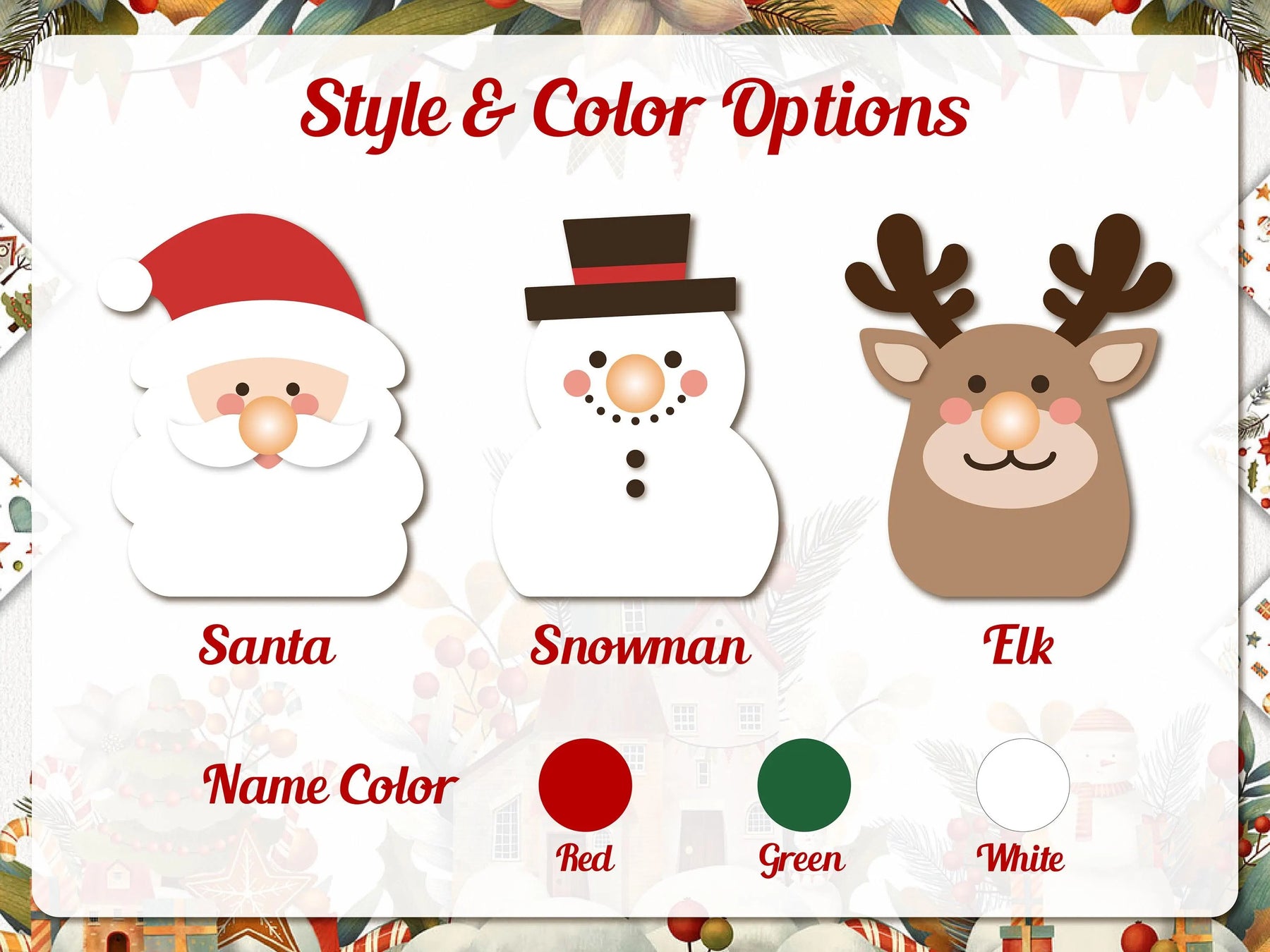 Styles disponibles : Père Noël / Bonhomme de neige / Renne
