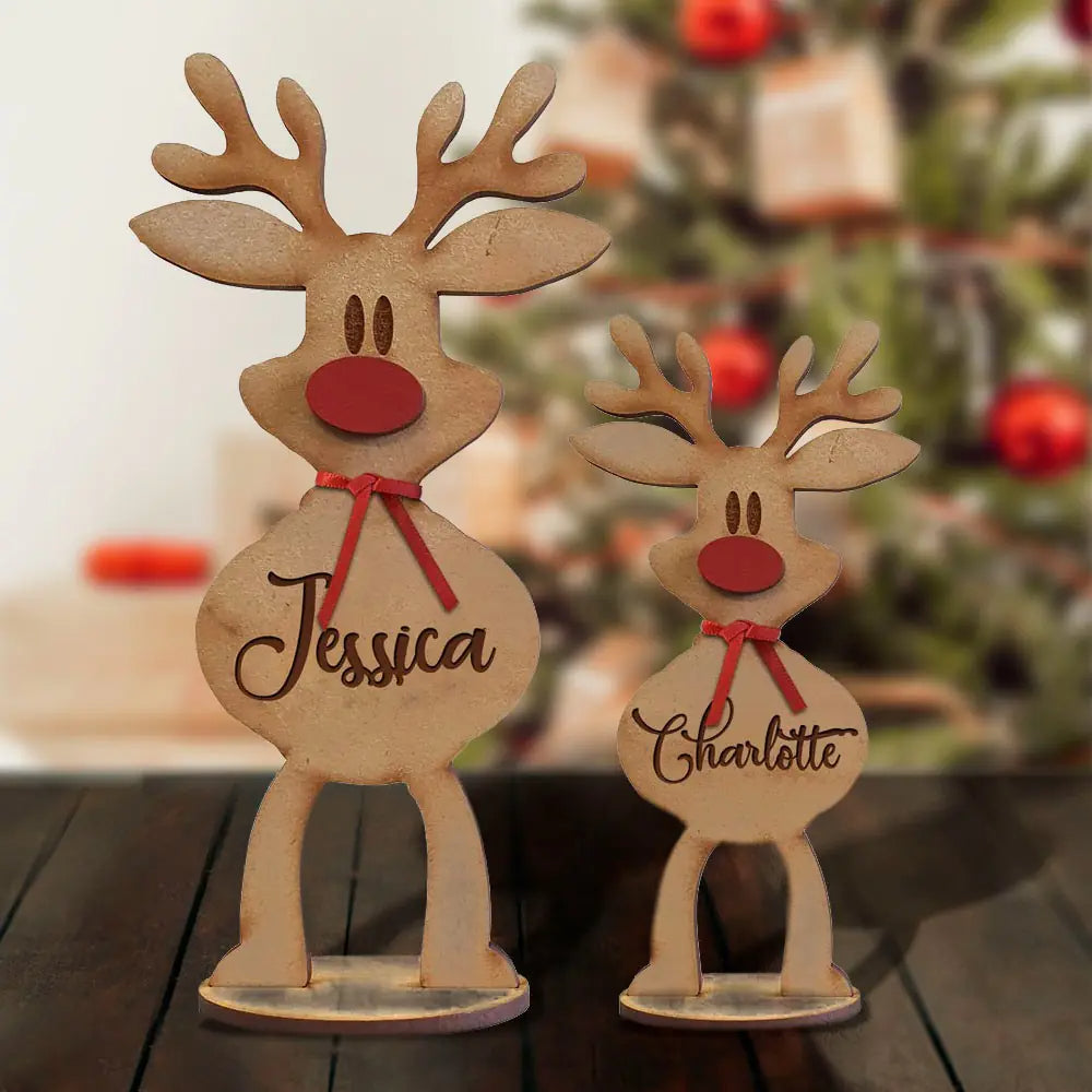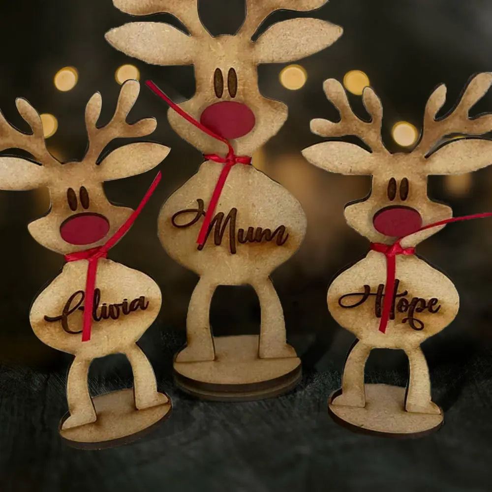Décoration d'intérieur personnalisable : le design personnalisable vous permet d'inclure le nom de votre famille, faisant de ce renne une pièce unique de décoration d'intérieur. Il est parfait pour ajouter une touche personnalisée à votre espace de vie pendant la période des fêtes.