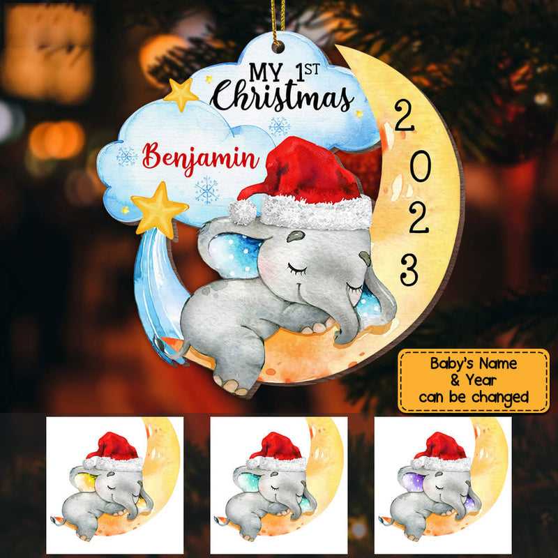 Ornements de Noël personnalisé avec 5 couleurs pour bébé éléphant