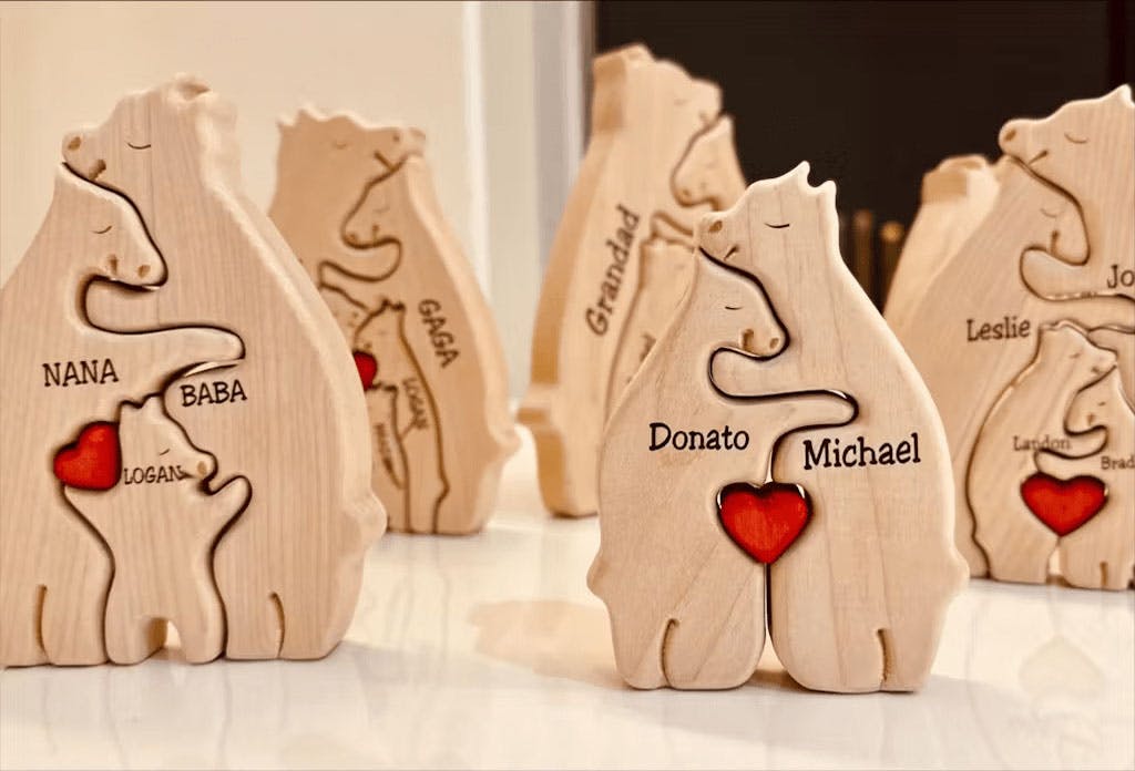 2-10 Prénoms🐻Puzzle familial d'ours en bois