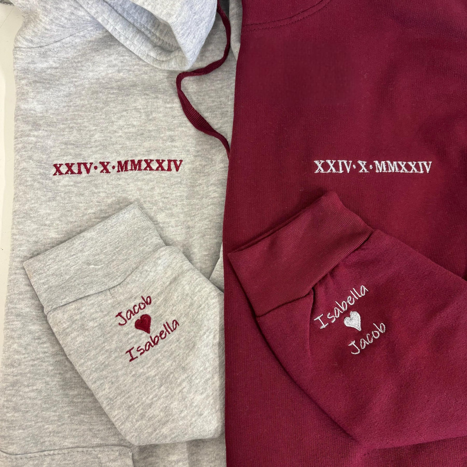 Sweat-shirts brodés de chiffres romains et des noms du couple