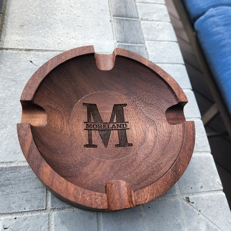 Personnalisez votre cendrier avec un nom de famille gravé au laser ainsi qu’une initiale en monogramme. Attention : la gravure sera faite exactement selon le texte que vous indiquez — pensez à bien vérifier l’orthographe !