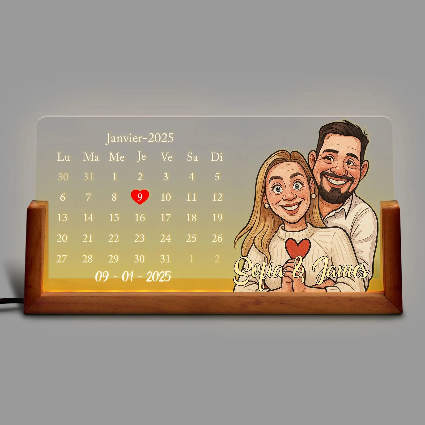 Illuminez vos plus beaux moments avec notre lampe LED calendrier personnalisée, conçue pour afficher votre photo de couple et mettre en valeur une date qui compte vraiment pour vous. Un cadeau romantique et unique pour la Saint-Valentin, un anniversaire de rencontre, des fiançailles ou simplement pour dire je t’aime.