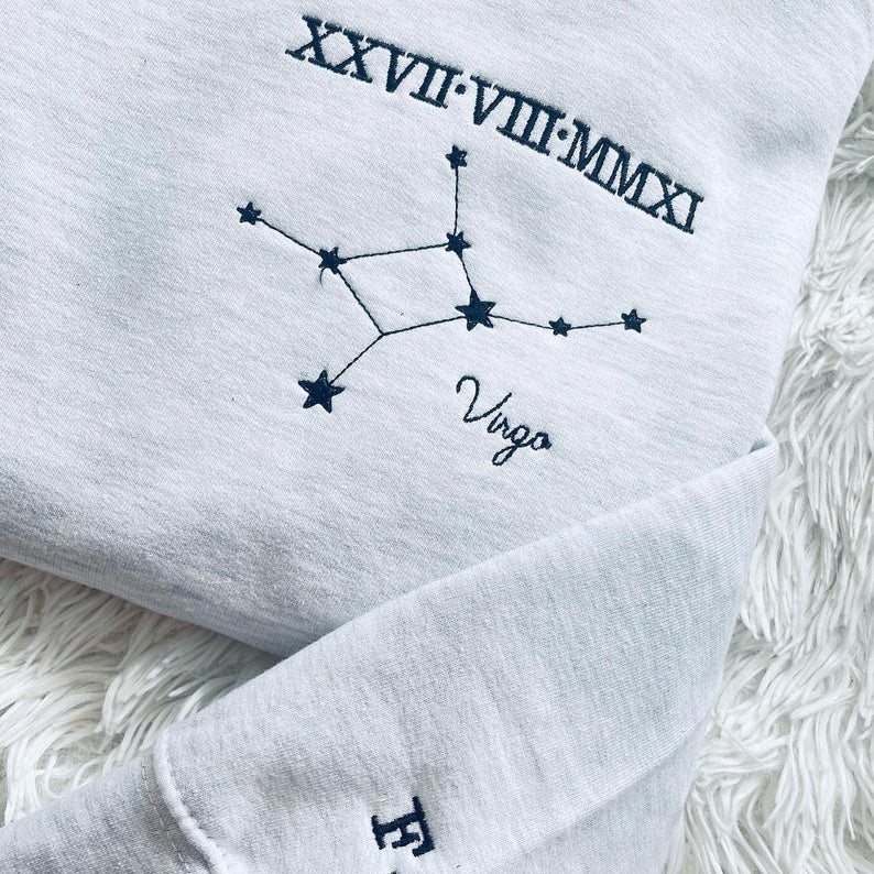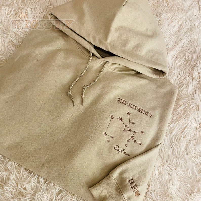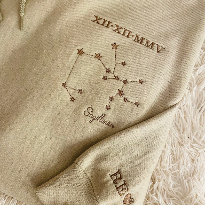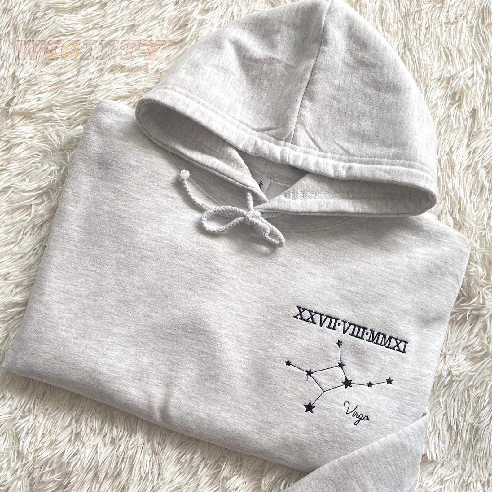 Sweat à capuche personnalisé avec broderie constellation de date romaine💥