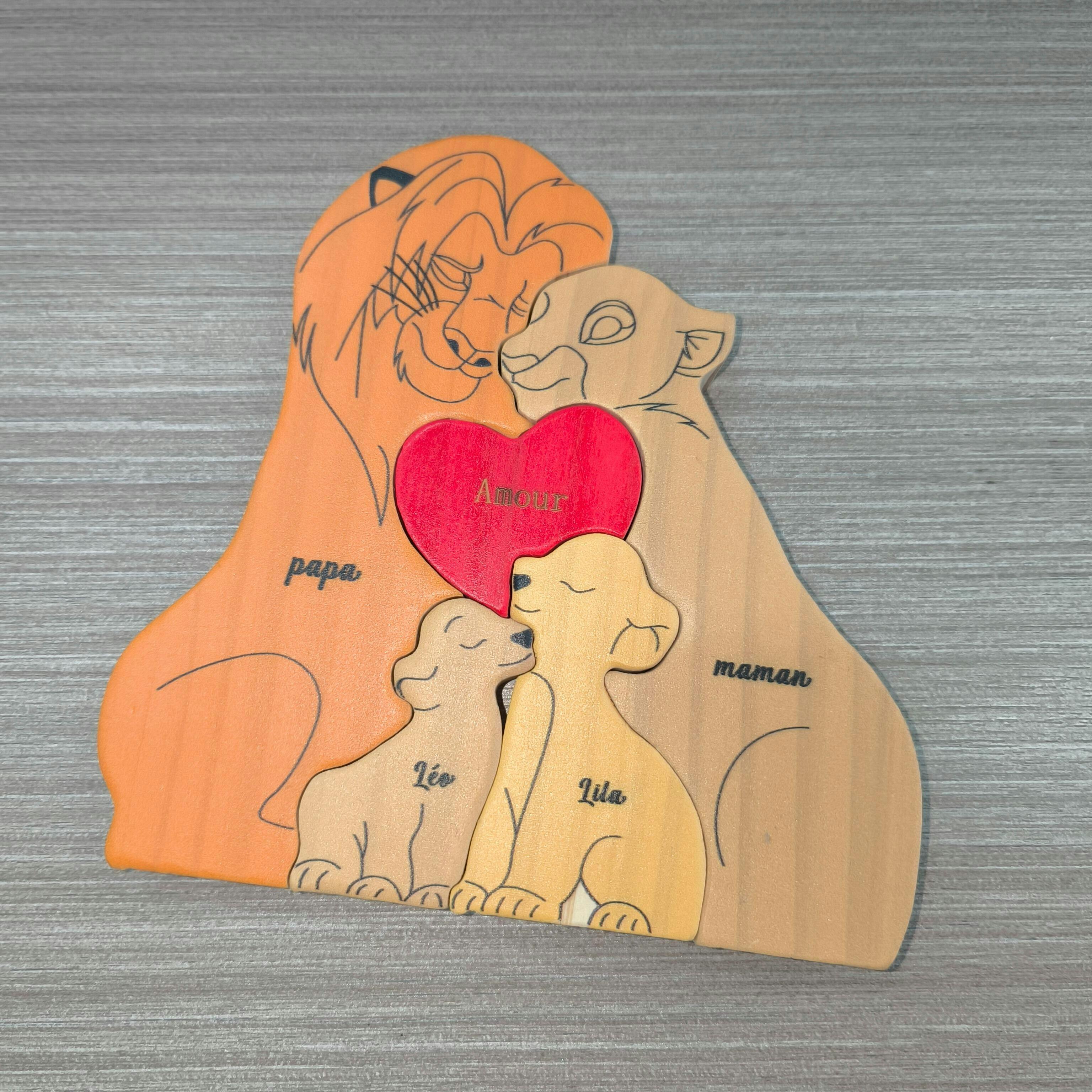 Puzzle en bois personnalisé – Famille de lions 🦁💖