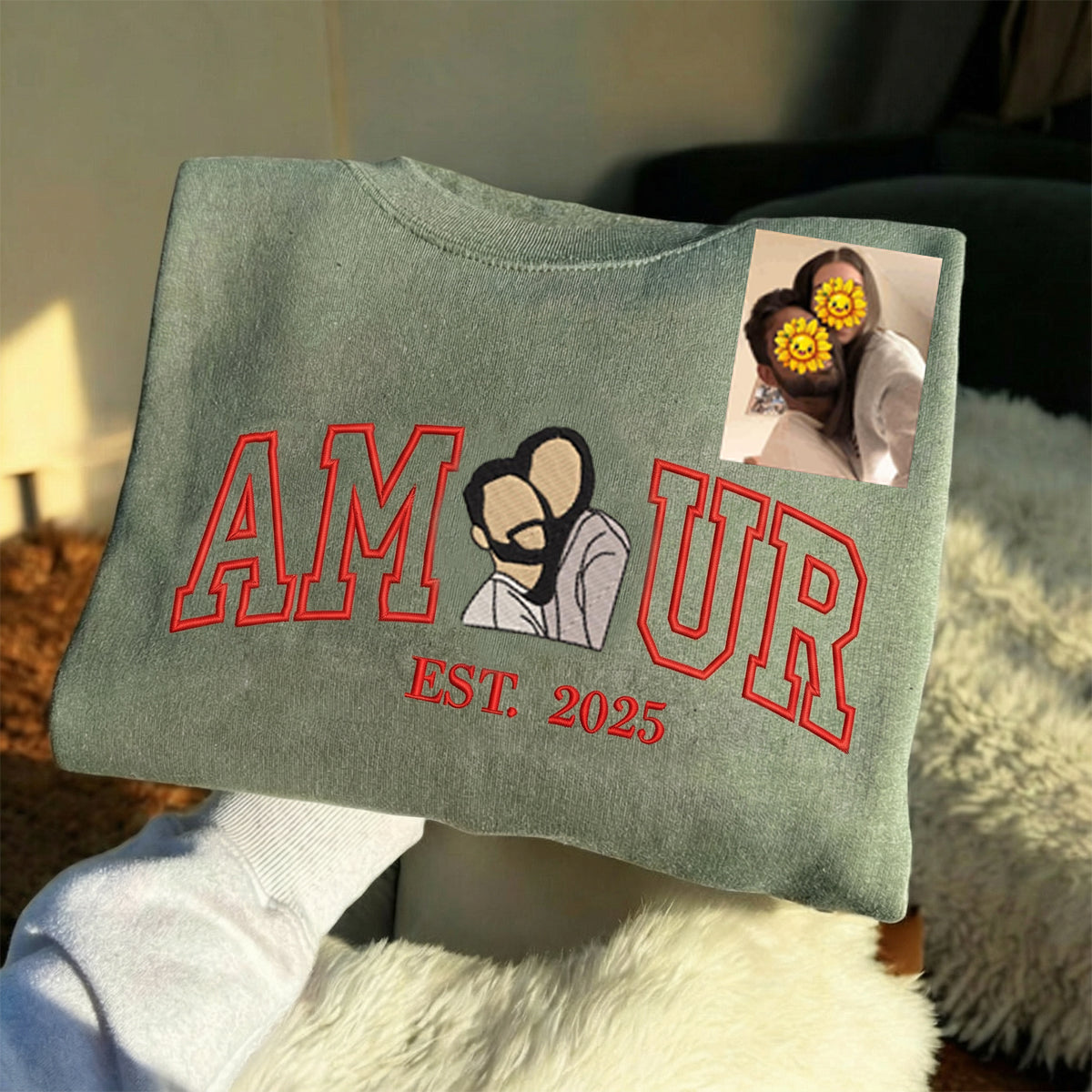 Sweat-shirt personnalisé avec portrait brodé photo AMOUR